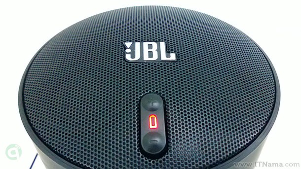 اس میں سپیکر اوپر کی جانب نصب ہے اور اس پر لوہے کی جالی لگائی گئی ہے جس پر JBL کا لوگو نمایاں ہے۔ اس کے علاوہ اوپر کی سطح پر ہی آواز کم یا تیز کرنے کے بٹن اور بیٹری انڈیکیٹر بھی موجود ہے۔