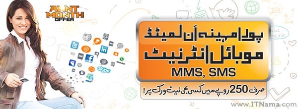 یوفون کی جانب سے حال ہی میں ’ انت مہینہ ‘ کے نام سے ایک نئی آفر متعارف کروائی گئی ہے جسکے ذریعے صارفین 250 روپے ماہانہ میں لامحدود ایس ایم ایس، ایم ایم ایس اور موبائل انٹرنیٹ استعمال کرسکتے ہیں۔