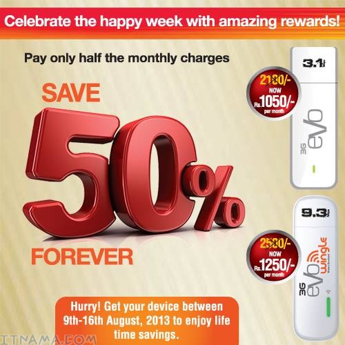 پی ٹی سی ایل کی جانب سے بہت عرصہ بعد صارفین کے لیے ایک بہت ہی بہترین آفر پیش کی گئی ہے جس کے تحت پی ٹی سی ایل نے ایوو اور ایوو ونگل کے ماہانہ چارجز میں 50 فیصد کمی کر دی ہے۔ یعنی 9 اگست سے 16 اگست کے دوران خریدے گئے تمام نئے پوسٹ پیڈ اور پری پیڈ کنکشنز پر ہمیشہ کے لیے 50 فیصد ڈسکاؤنٹ فرام کیا جارہا ہے۔