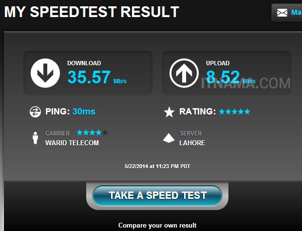 پروپاکستانی کی ایک رپورٹ کے مطابق وارد ٹیلی کام کی جانب سے سالگرہ کے موقع لاہور کے مرکزی دفتر میں 4 جی سروس کا ٹرائل کیا گیا ۔ نیچے دی گئی سکرین شاٹ کے مطابق وارد ٹیلی کام کا موبائل انٹرنیٹ اس وقت پاکستان میں سب سے تیز ترین ہےتاہم چونکہ یہ صرف ایک ٹیسٹ تھا لہذا اصل رفتار اس سے مختلف ہوسکتی ہے۔