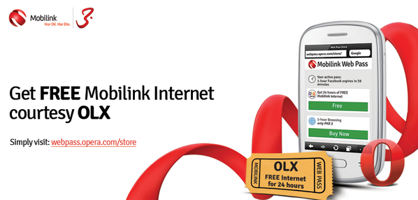 یہ آفر حاصل کرنے کے لیے اوپرا منی براؤزر ڈاؤنلوڈ کیجیئے اور اس لنک کو فالو کریں : webpass.opera.com یاد رہے کہ یہ آفر صرف پہلے ایک لاکھ صارفین کے لیے ہی موثر ہے۔